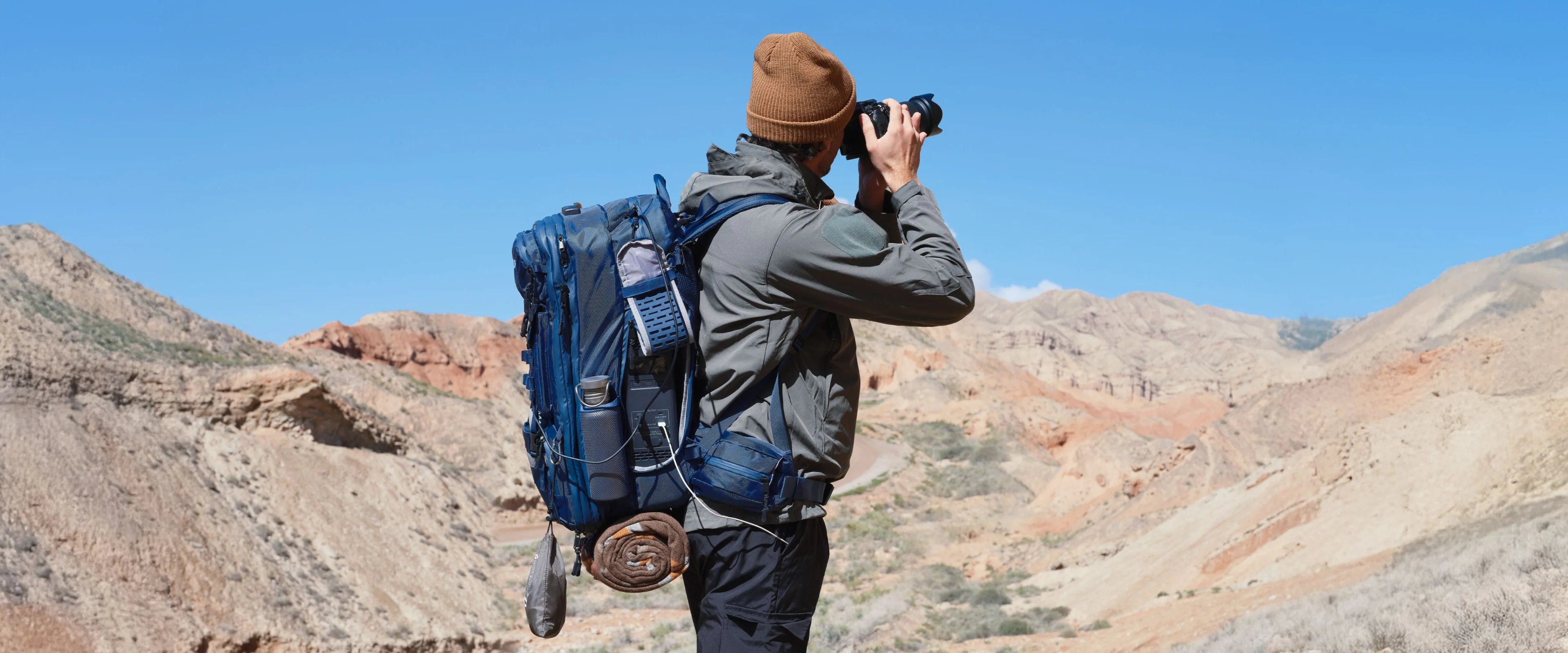 Dzięki zewnętrznemu systemowi mocowań, możesz elastycznie przyczepić namiot, śpiwór, panele słoneczne i inne akcesoria, bez zajmowania miejsca w plecaku. Dodatkowo, regulowane paski na ramionach zostały wyposażone w klamry do mocowania kamer sportowych, takich jak GoPro, dzięki czemu możesz rejestrować każdą chwilę bez użycia rąk. BLUETTI Handsfree 2 to doskonały wybór dla podróżników, fotografów i miłośników outdooru, którzy potrzebują wszechstronnego i funkcjonalnego plecaka na każdą wyprawę.