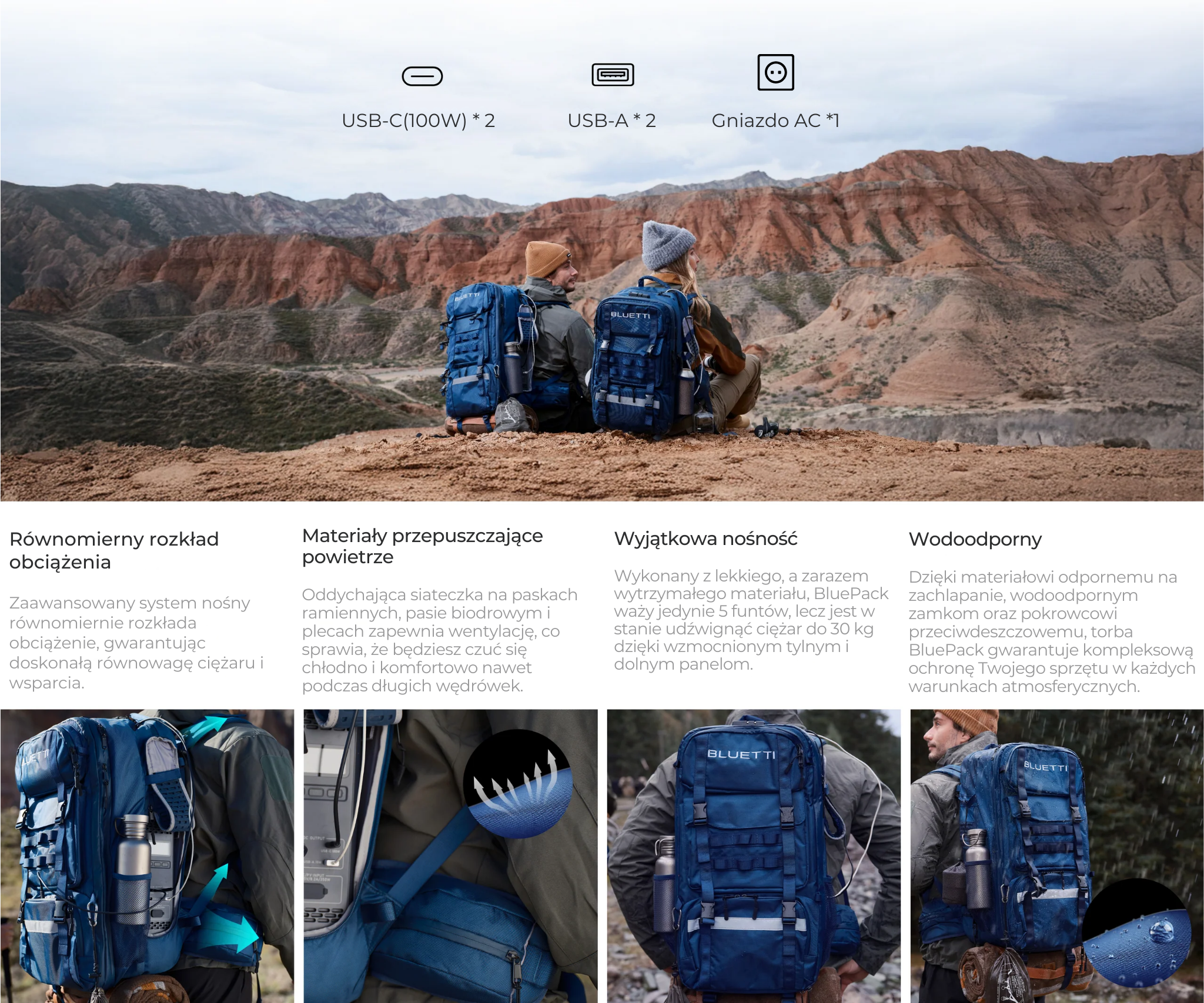 • Energia w ruchu: Ładuj wiele urządzeń bez użycia rąk, nosząc własną elektrownię.